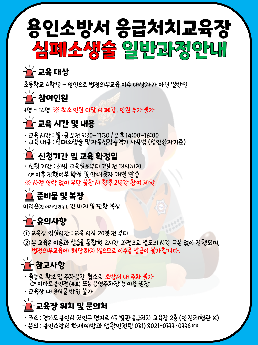 4. 교육시작 15분 이상 지각 시 이수증 발급 불가합니다.