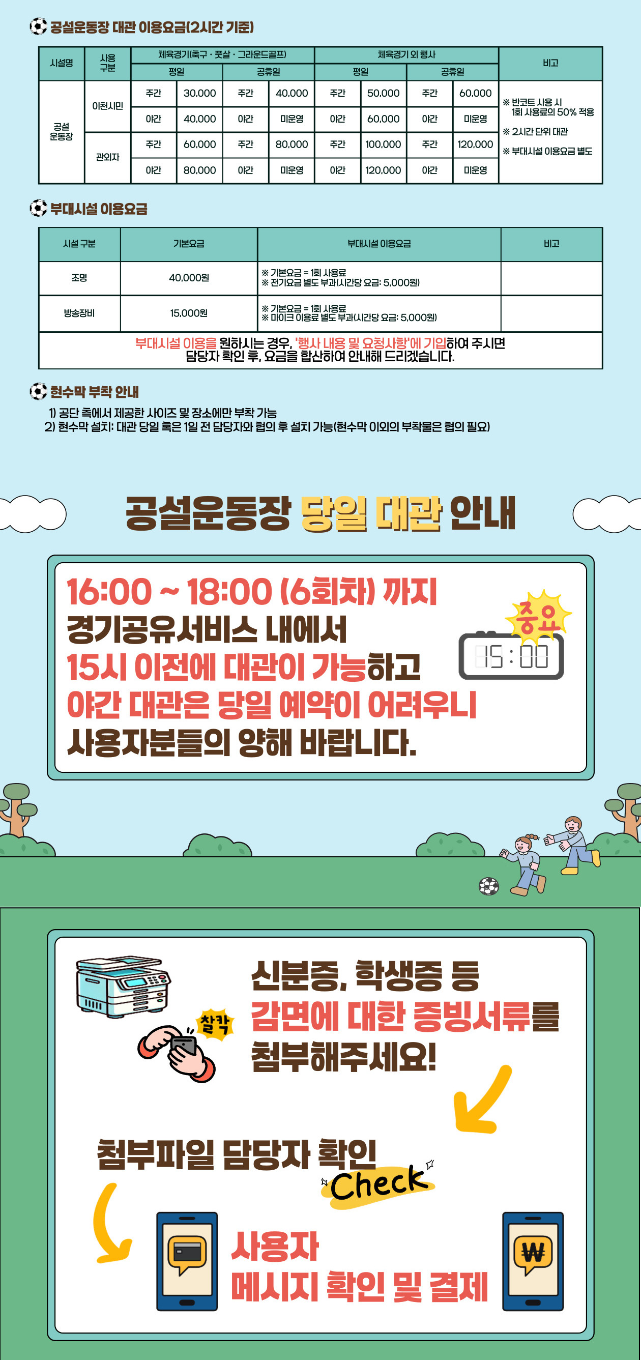 공설운동장 축구장(하절기: 4월~10월) 이용은 만족하셨나요?같은 지역에 유사한 시설이 8개 더 있습니다.