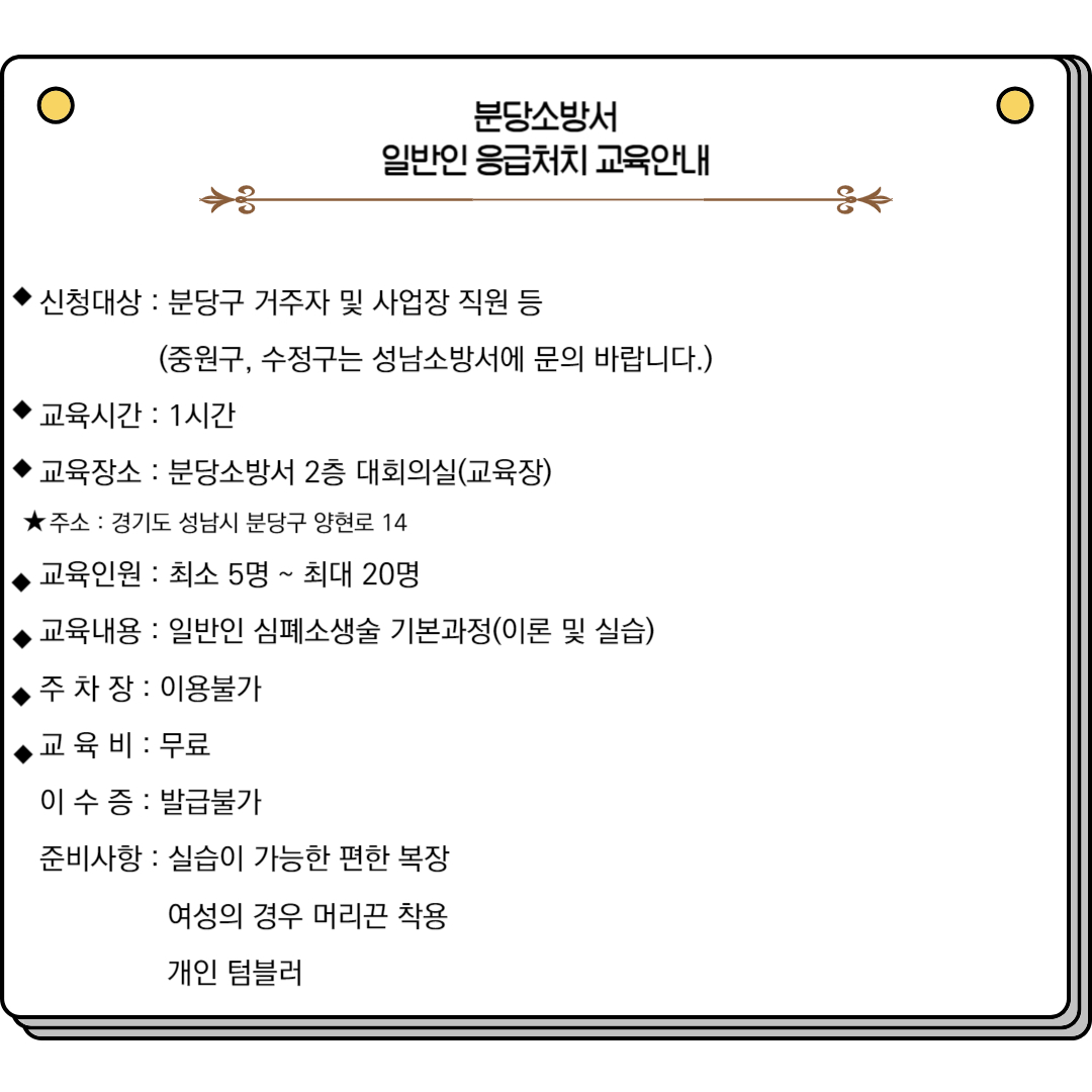 ◆ 단체 교육 신청 및 문의사항 : 031-8018-3332 분당소방서 화재예방과 소방위 박동선