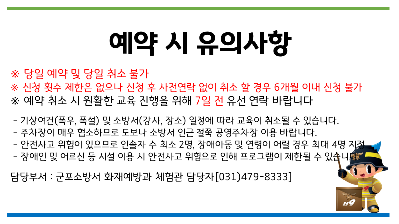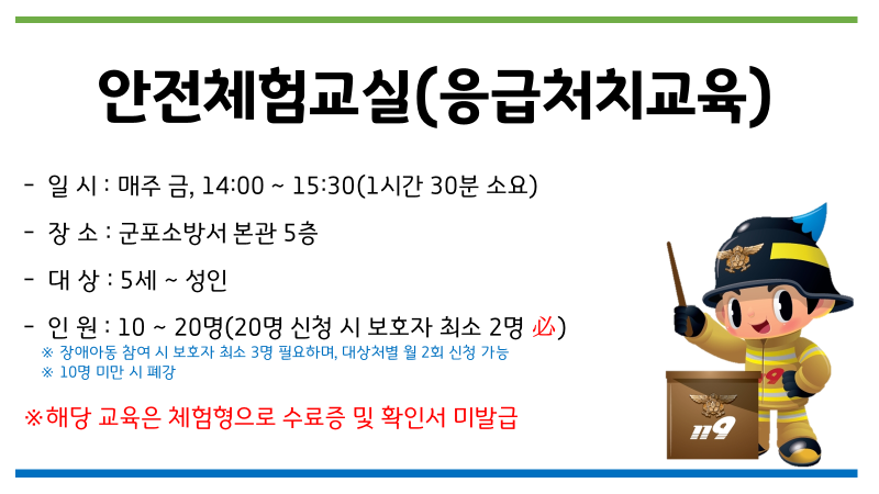 군포소방서 안전체험관 교육(응급처치) 이용은 만족하셨나요?같은 기관의 유사한 시설이 2개 더 있습니다.