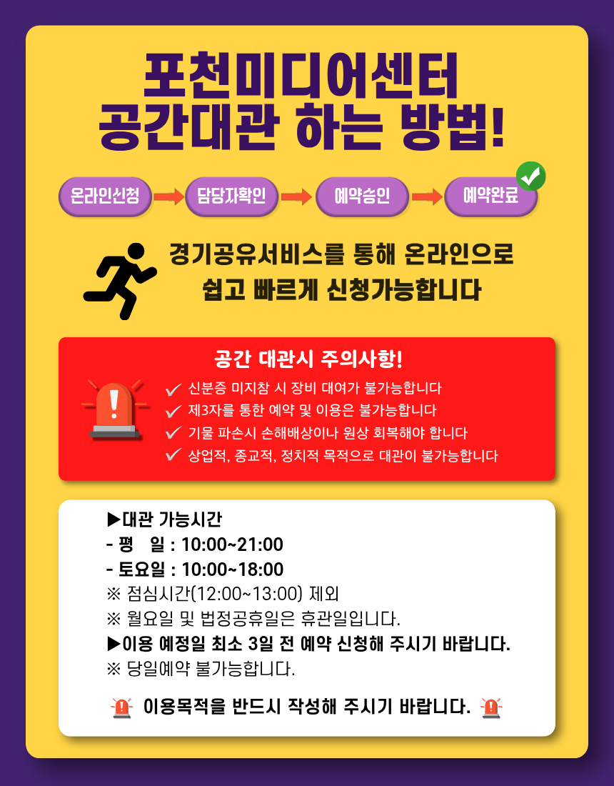 신청승인이 다소 지연될 수 있으며, 모든 대관신청은 선착순으로 진행됩니다.)