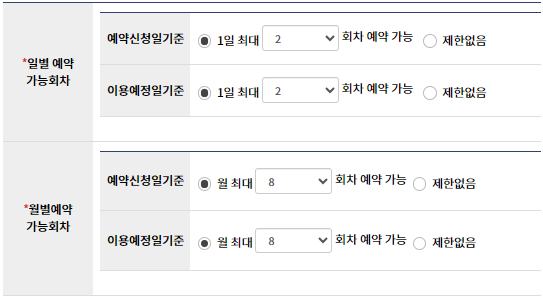 이용예정일기준 월 최대 8회차까지 예약가능