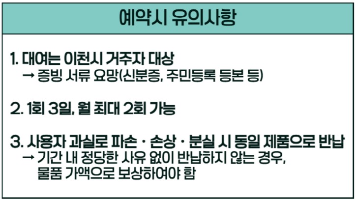 | 예약마감일 | 이용 예정 1일 전까지 | ||||||||||||||||||