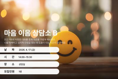 내용 : 전문가와의 따뜻한 대화를 통해 마음을 가볍게 해보세요.
