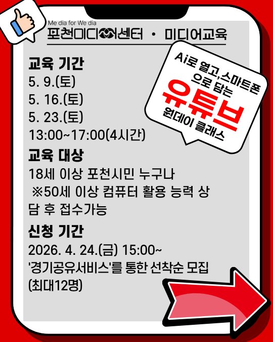 (포천미디어센터 운영시간 화요일~토요일, 10:00~21:00)