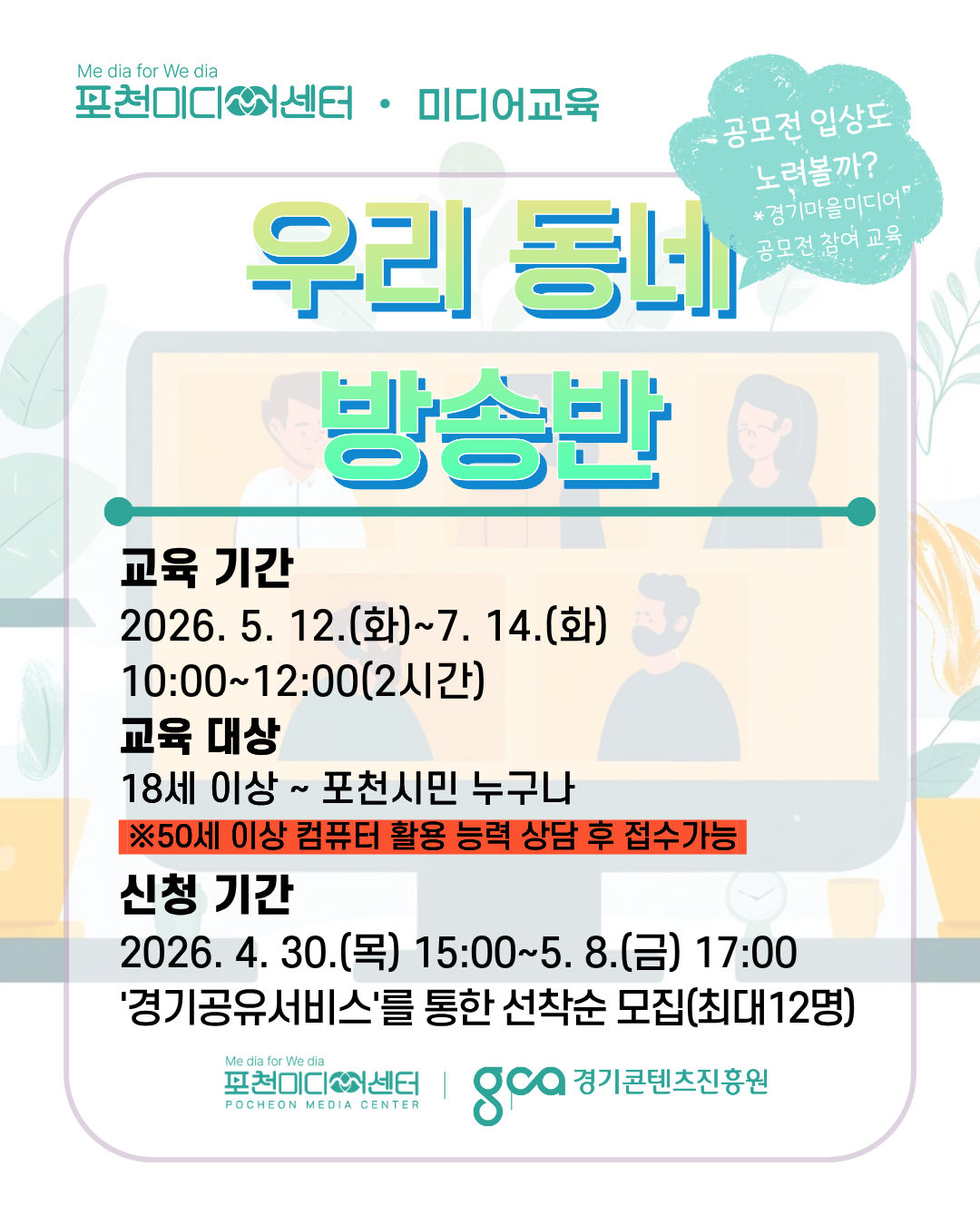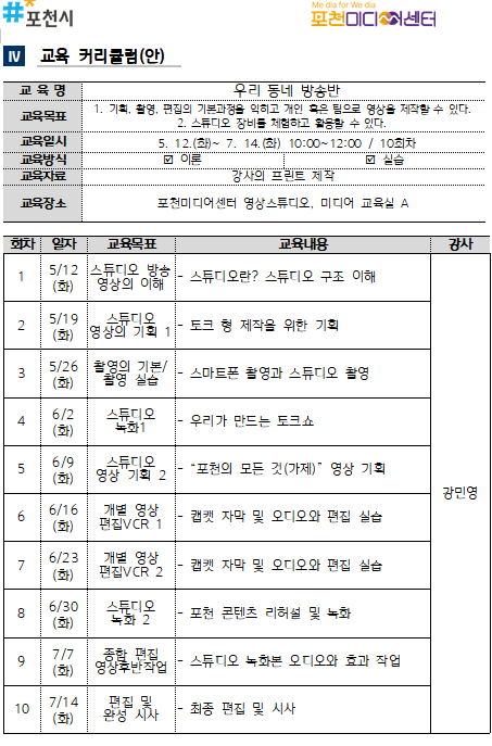 (포천미디어센터 운영시간 화요일~토요일, 10:00~21:00)